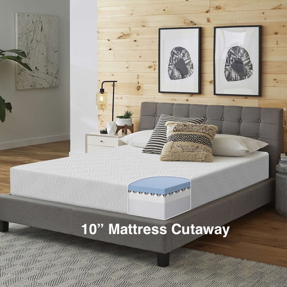 Featuring a cooling gel memory foam layer, this medium-firm mattress contours to relieve pressure points while helping regulate temperature for a better night’s sleep, and features CertiPUR-US® certified gel memory foam for cooling comfort. The durable high-density support base promotes proper spinal alignment and long-lasting performance, giving you the comfort of premium materials without the premium price.